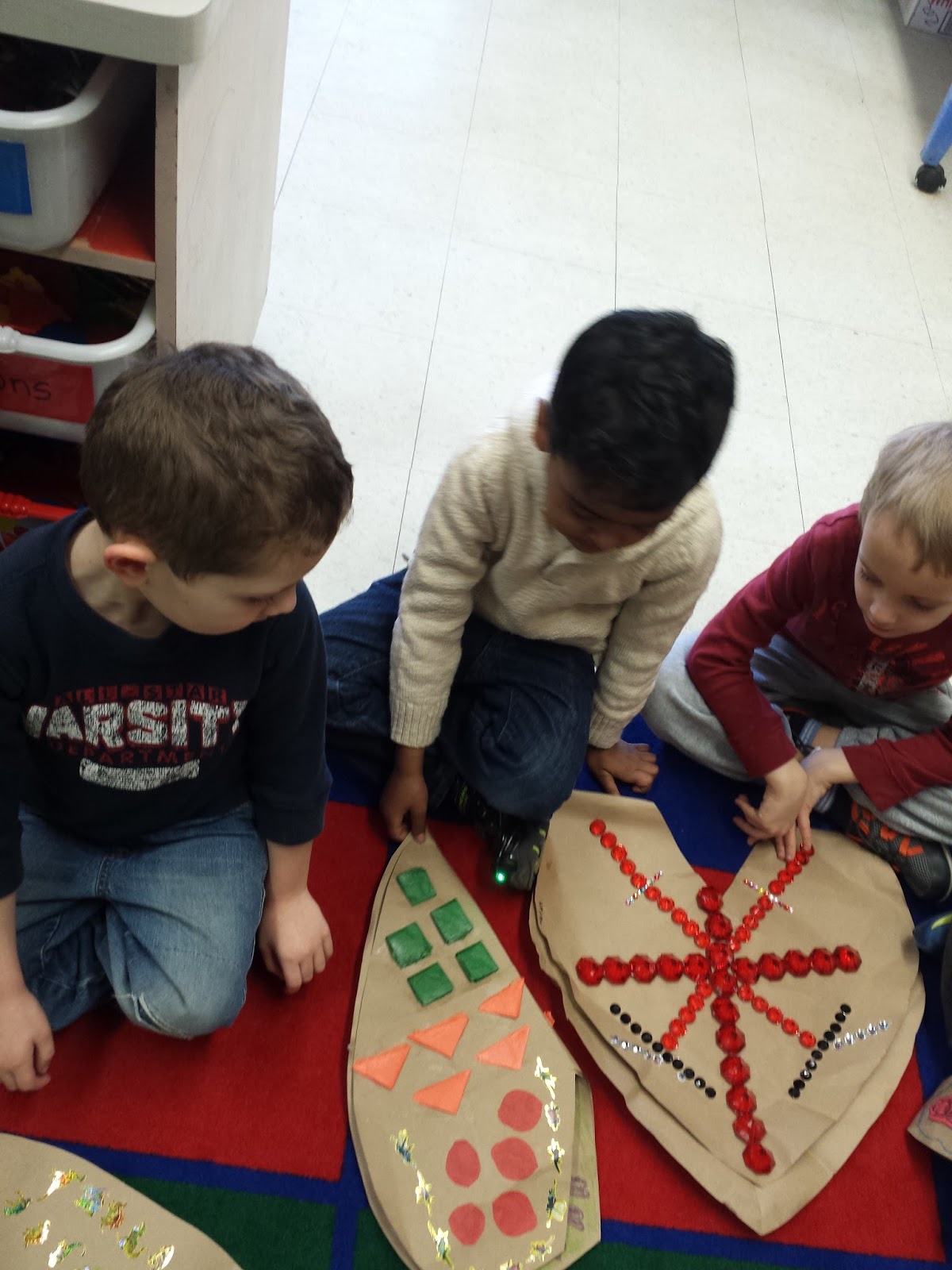 Of course, the hundredth day is still very much a topic of discussion. Here are students making patterns, measuring the links against the length of the carpet, and counting to 100.