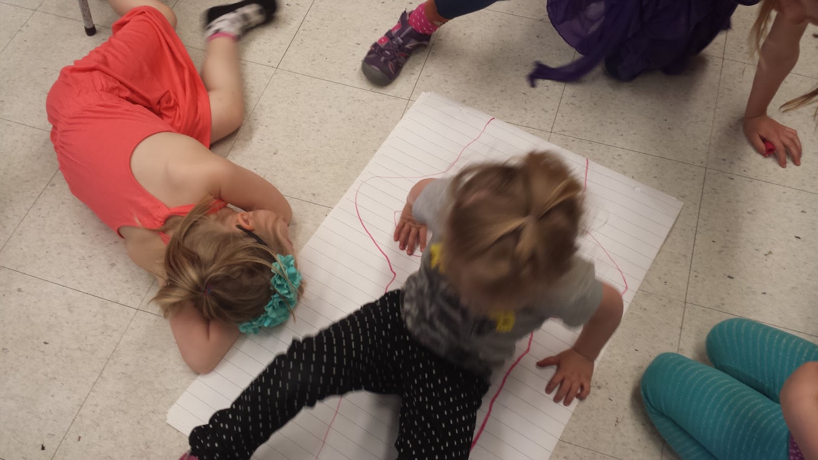| Then we traced each others' bodies to make interesting outlines |